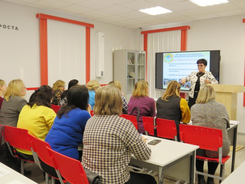 Широкова Е. В., заместитель директора по ВР выступила по теме: «Опыт организации внеурочной деятельности, дополнительного образования. Организация деятельности психолого-педагогического класса».