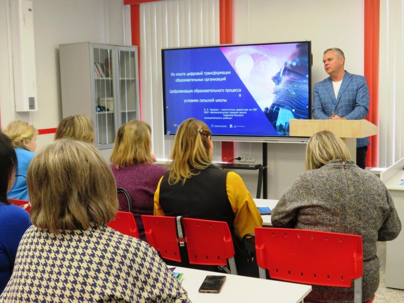 На семинаре также обсуждались актуальные вопросы влияния хорошо организованной и продуманной информационно-образовательной среды на обучение и воспитание школьников. С выступлением по теме: «Цифровизации образовательного процесса в условиях сельской школы» выступил Б. Е. Мошкин, заместитель директора по УВР.