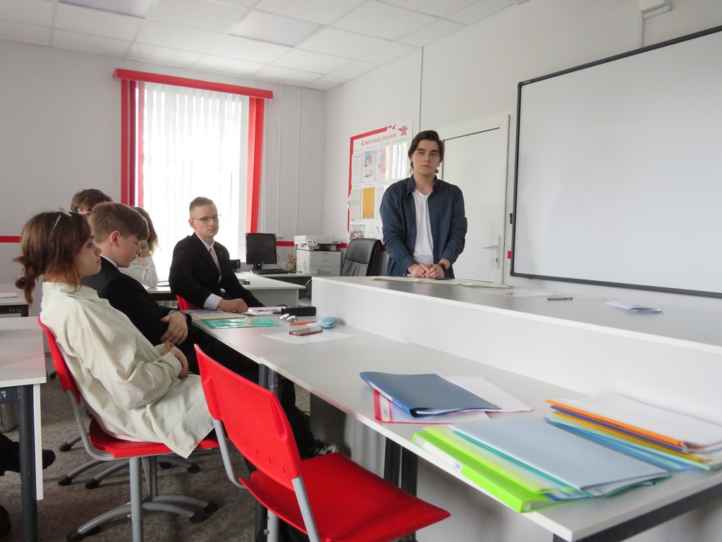 К дискуссии на уроке мужества присоединился выпускник школы Лебедев Илья, который служит по контракту в зоне СВО. Илья рассказал о военных буднях, о взаимоотношениях в их коллективе, поделился впечатлениями жизни.